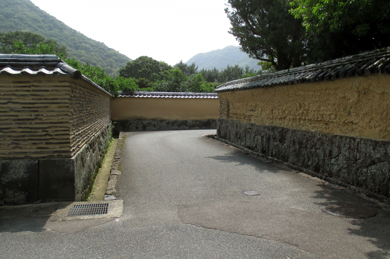 平安古の鍵曲は平安古かいまがり交流館の近くにありました。こちらの鍵曲は、堀内地区の鍵曲(かいまがり)に比べると、剥き出しの土塀に味わいがありました。塀がそれ程高いわけはありませんから、実効はどのくらいあるものかとは思いますが・・・。それよりも、道路の狭さの方が防御には役立ちそうです。