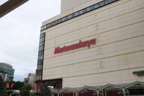 駅前にあります。ただし、クルマの街だから、だと思いますが、松坂屋で購入すると、レシートを提示して3時間の駐車場サービスがあります。