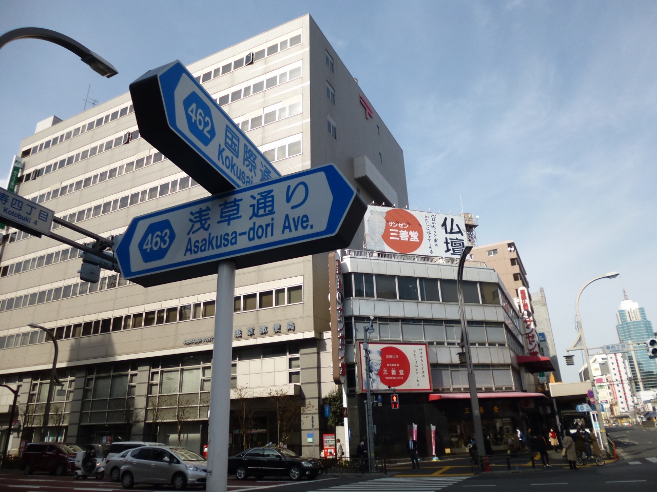 都道462号の一部、浅草通りとの交差点から言問通りとの交差点までの約800メートルの区間が、通称「浅草国際通り」と呼ばれています。かつてこの通り沿いに国際劇場があったことが語源ということです。時代とともに徐々に光景は変わりつつありますが、新旧が入り混じり、随所に浅草らしさが感じられます。コテコテの浅草ではありませんが、歩いていて楽しいと感じる通りです。