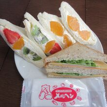JR品川駅構内のエキュート品川サウスにある弁当や手土産の店舗が集まっているところにあります。エキュート上野やエキュート赤羽にあるサンドイッチハウスメルヘンを利用したことがありましたが、今回品川駅を利用した際に昼食用を買いに寄りました。クリームにキウイ、黄桃、イチゴが入っているフルーツスペシャルと黄桃と瀬戸内レモンとブランのWチーズハムサンドを買いました。エキュート内でレモンフェアを行っていて、黄桃と瀬戸内レモンサンドは大きく切ったみずみずしい黄桃の甘みとクリームのレモンの酸味がさわやかなフルーツサンドでした。