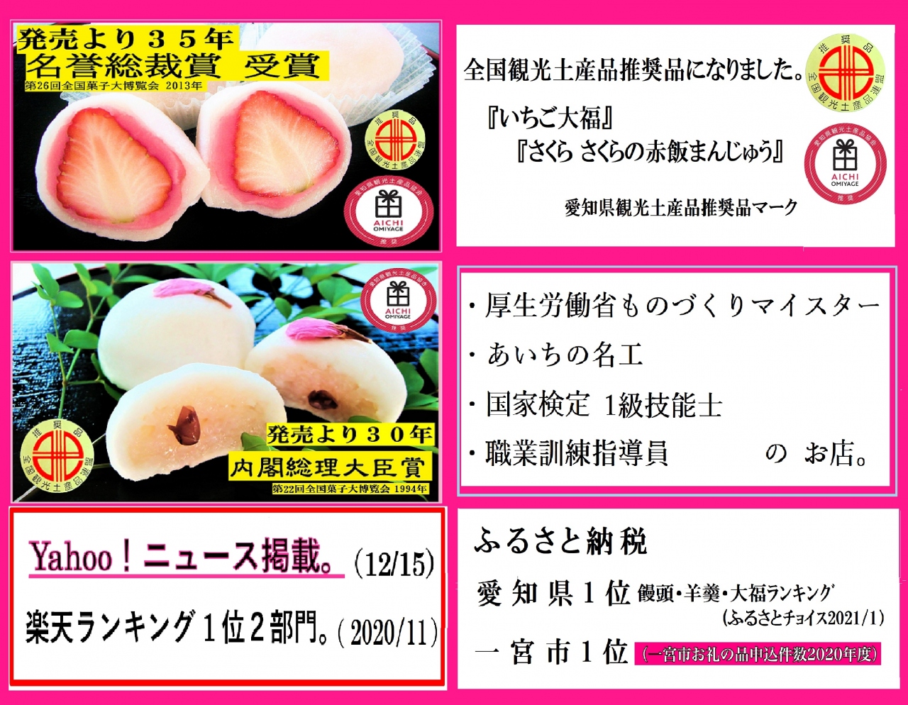全国観光土産品推奨品。愛知県観光土産品推奨品。一宮市観光物産品推奨。