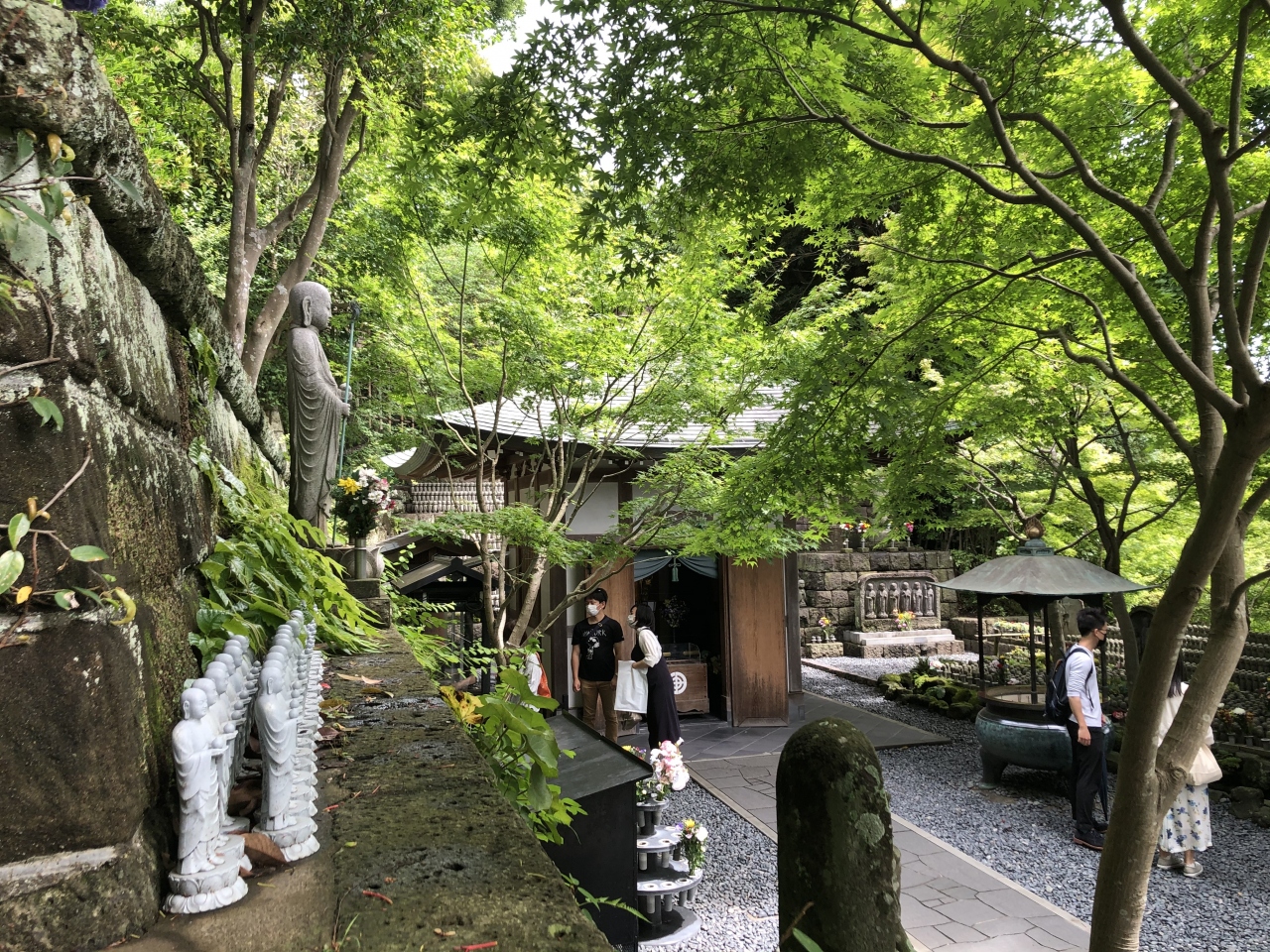 長谷寺の入口から本堂のある広場まで、階段で上がる途中に、地蔵堂があります。現在の地蔵堂は、建物の老朽化によって平成15年に再建されたもので、お堂に祀られている地蔵尊も、このときに併せて造立されました。この地蔵尊は、子安・繁栄のご利益があるとされています。