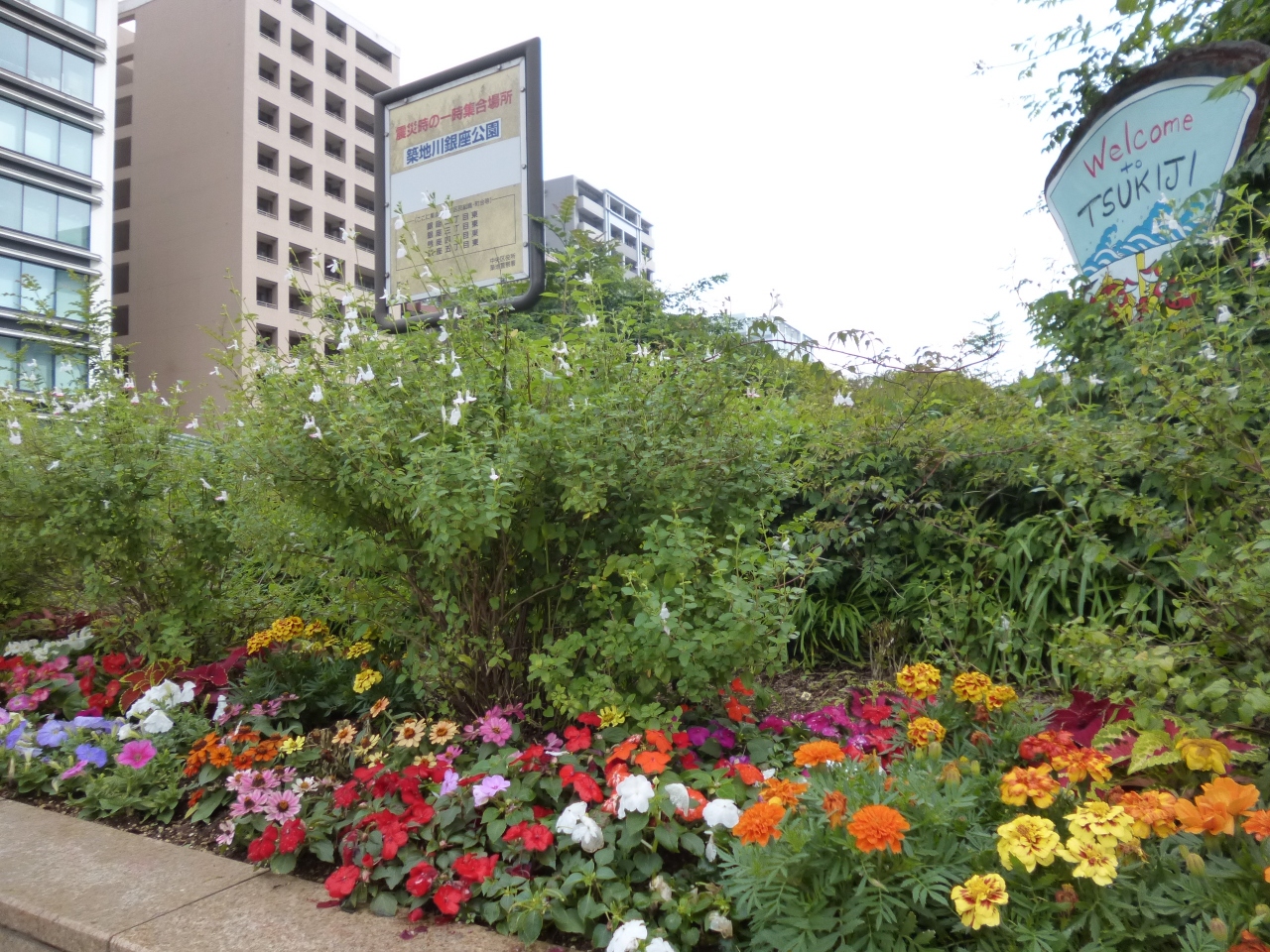 銀座松竹スクエアと歌舞伎座の間にある万年の傍にある公園です。今は、高速道路を車が流れていますが、以前は築地川が流れていたようです。公園の中には、ベンチが数台と名犬チロリの記念碑などがあります。お昼近くにいくと、会社員のくつろいだ姿を多く見かけます。