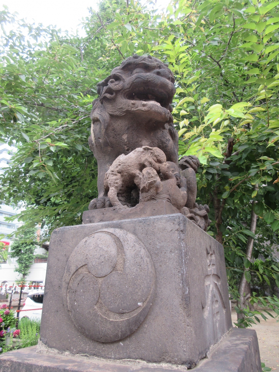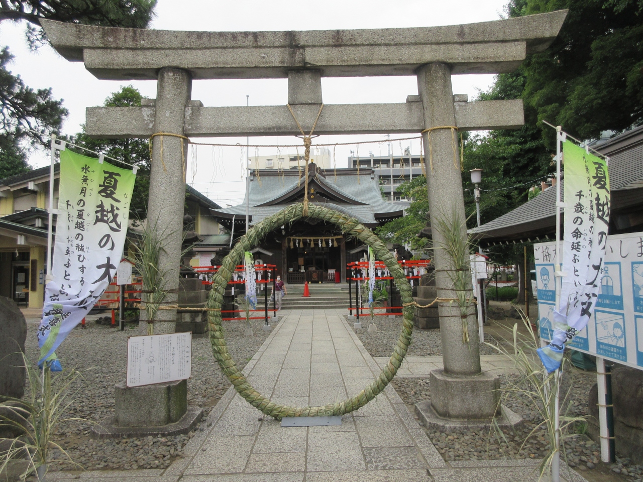 京急・平和島駅から品川方向に10分ほど、第一京浜沿いに建つ平安時代後期に編纂された延喜式にも記載されている神社で、徳川家将軍も参詣したと伝わっています。東海七福神の一つ・弁財天が祀られ、たたくと鈴のような音がした鈴石と江戸時代の書家が寄進した鳥の模様がある鳥石が、社宝として保管されているそうです。非公開のため見ることはできませんでしたが、境内に鳥石の寄進について記した鳥石碑や文人の筆塚が置かれていました。社殿を守る一対の狛犬には、それぞれ3匹の子犬が彫られている珍しい姿をしていました。神社入口の歩道には、江戸時代に東海道を行き来した人たちが利用した磐井の井戸も残っています。訪れた時は悪疫を免れるとされる茅の輪の準備もされていて、子供を連れた多くの家族が参詣に訪れていました。