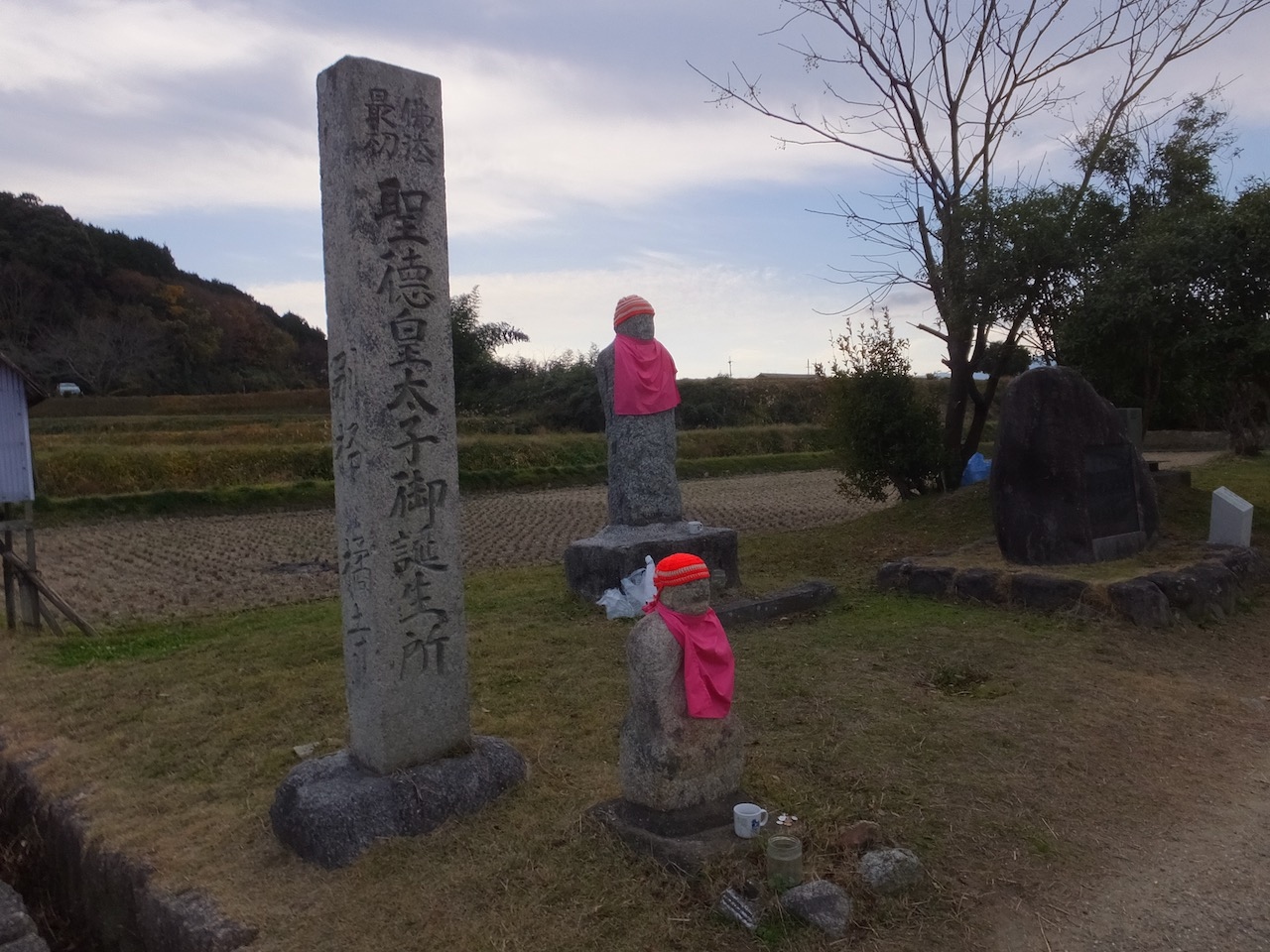 聖徳太子ゆかりの寺で、聖徳太子誕生地です。その石碑もあります。が何本もあるのが面白いです。3本までは見ました。他にもあるかもしれません。