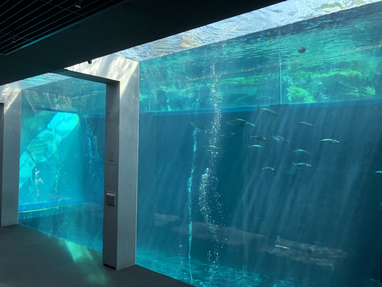 メインは潮目の大水槽で、中央の片方が黒潮の海、片方が親潮の海を再現しています。