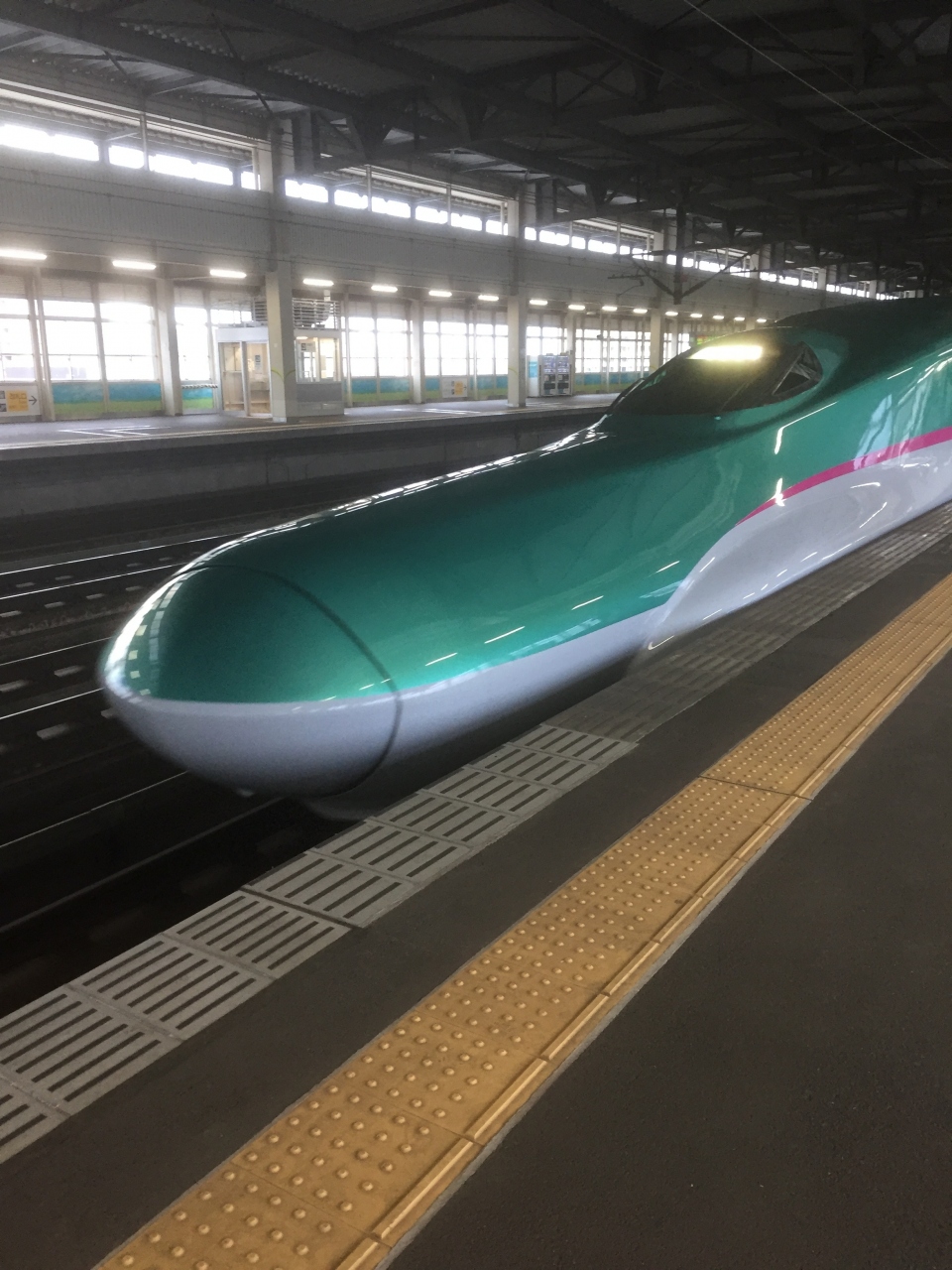 フルムーン夫婦グリーンパスで、八戸から盛岡、盛岡から一ノ関、一ノ関から東京といずれもグリーン席で利用しました。もう10年もたつとは思えない、グリーンのロングノーズ。東海道新幹線などとちがい、自由席がないので、こじんまり?乗車する人にもゆったりした雰囲気があります。