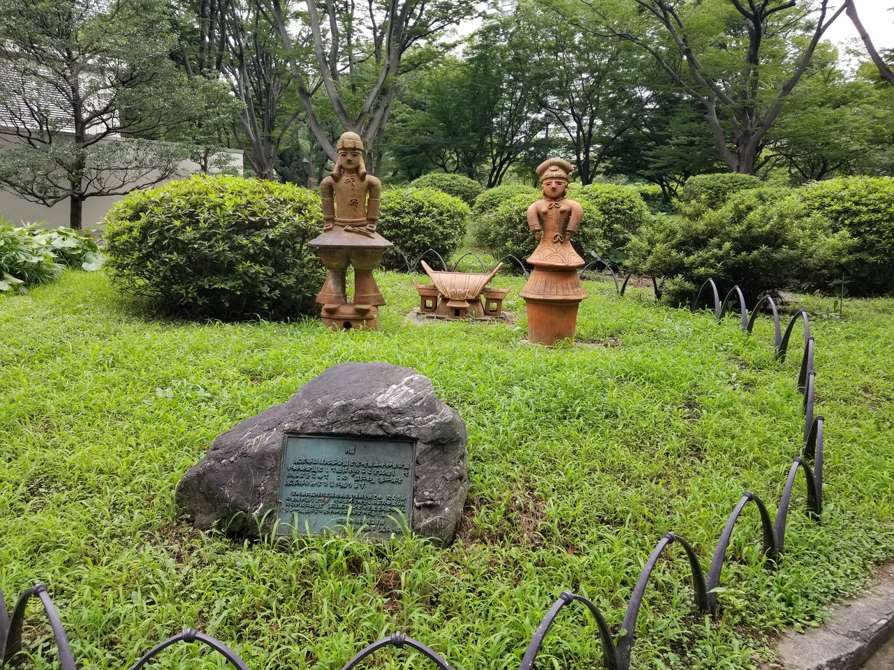 1965年8月21日に、東京都立日比谷公園と宮崎県立平和台公園が、姉妹公園として結ばれたことを記念し、特別史跡西都原さいとばる古墳群をはじめ、多数の古墳のある宮崎県より「はにわ」像二体を東京都に贈られた。