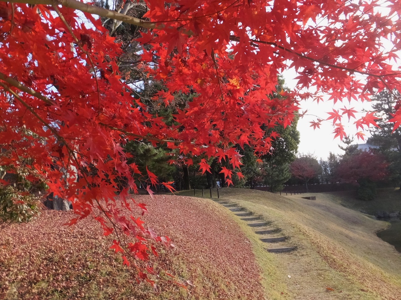 奈良ホテルがこの庭園というかお寺の敷地に作られたこともあって、奈良ホテルに宿泊するとこの庭園の無料入場券をいただけます。奈良ホテル側の無人の門から入場するかたちになります。朝の散歩に気持ちがよかったです。紅葉もきれいでした。