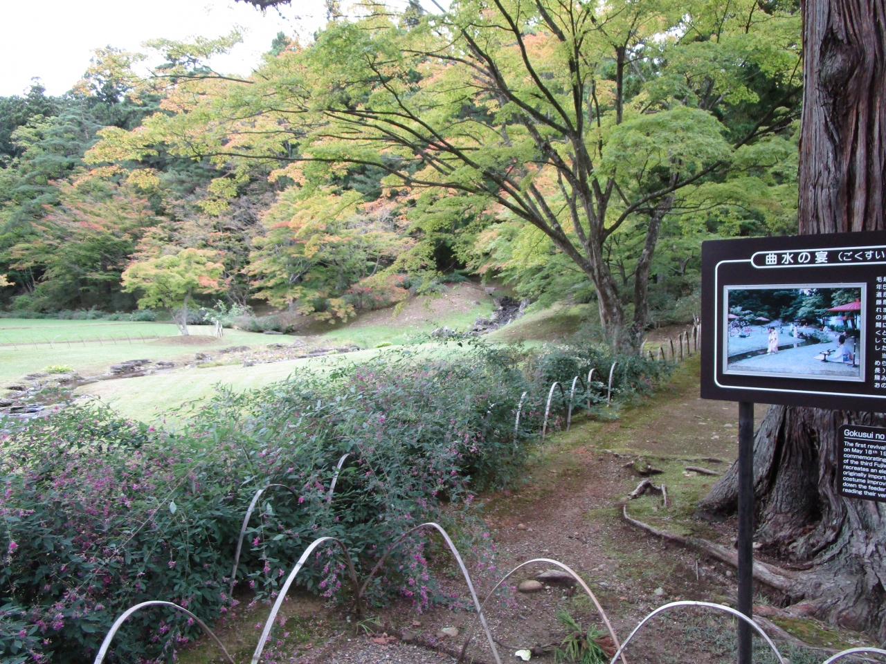 毛越寺の敷地内にあります。池をぐるっと回ったあたりに小川があり、そこで遣水に盃を浮かべて流し、その流れに合わせて和歌を詠むという平安時代の遊びだそうです。現在はひっそりとした印象を受けますが、当時の優雅な遊びに想像が巡りました。