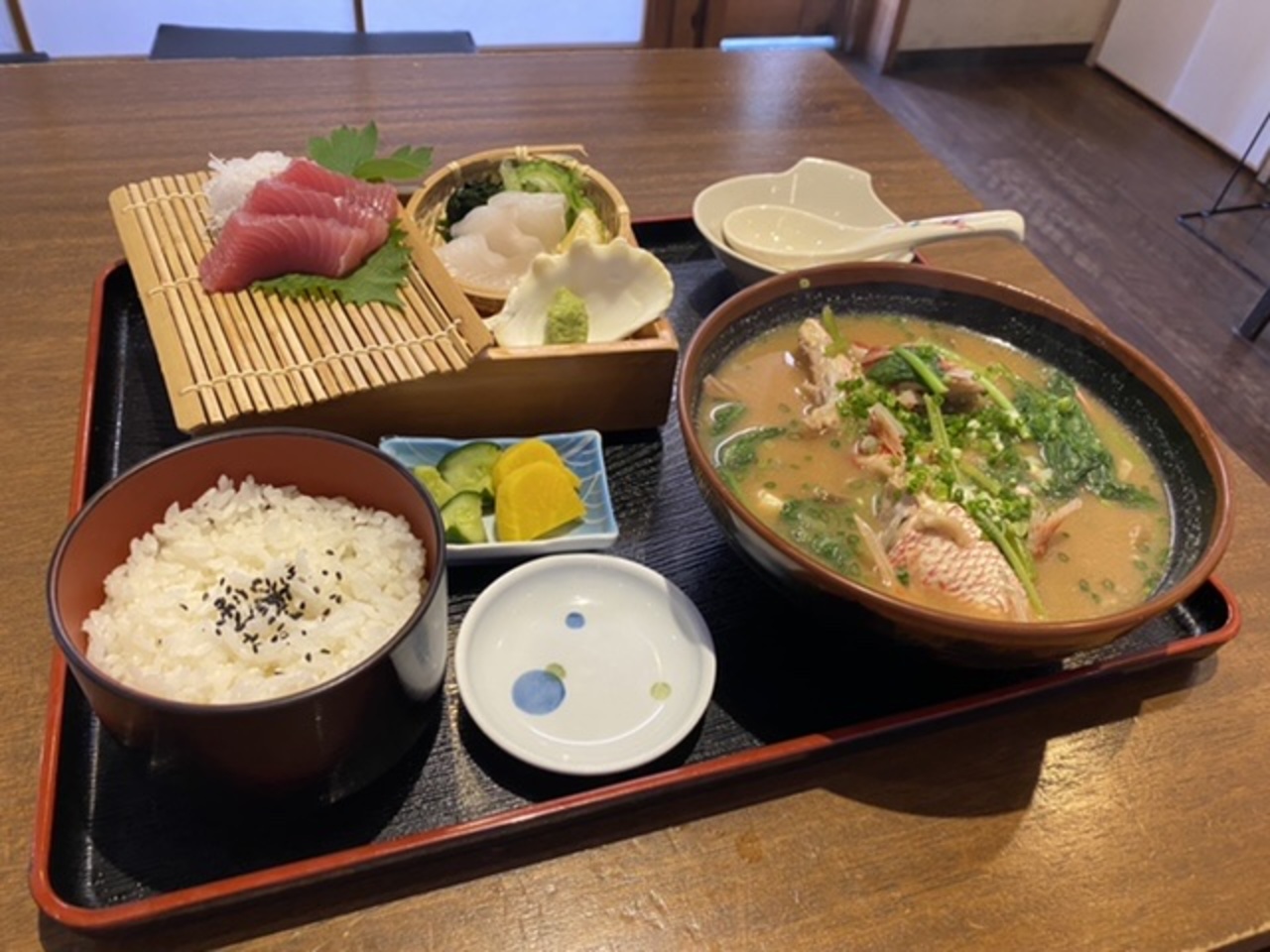 食べたのは島魚のあら汁定食1,410円(税込)!お刺身とあら汁ですね。最高の組み合わせでどちらも美味かった。