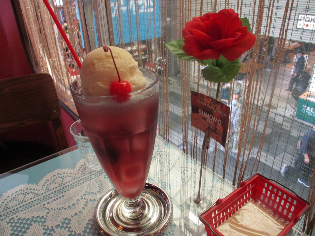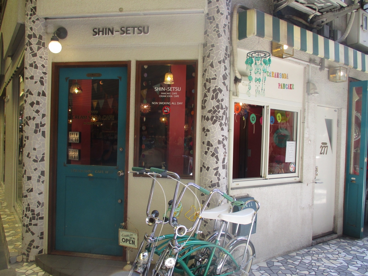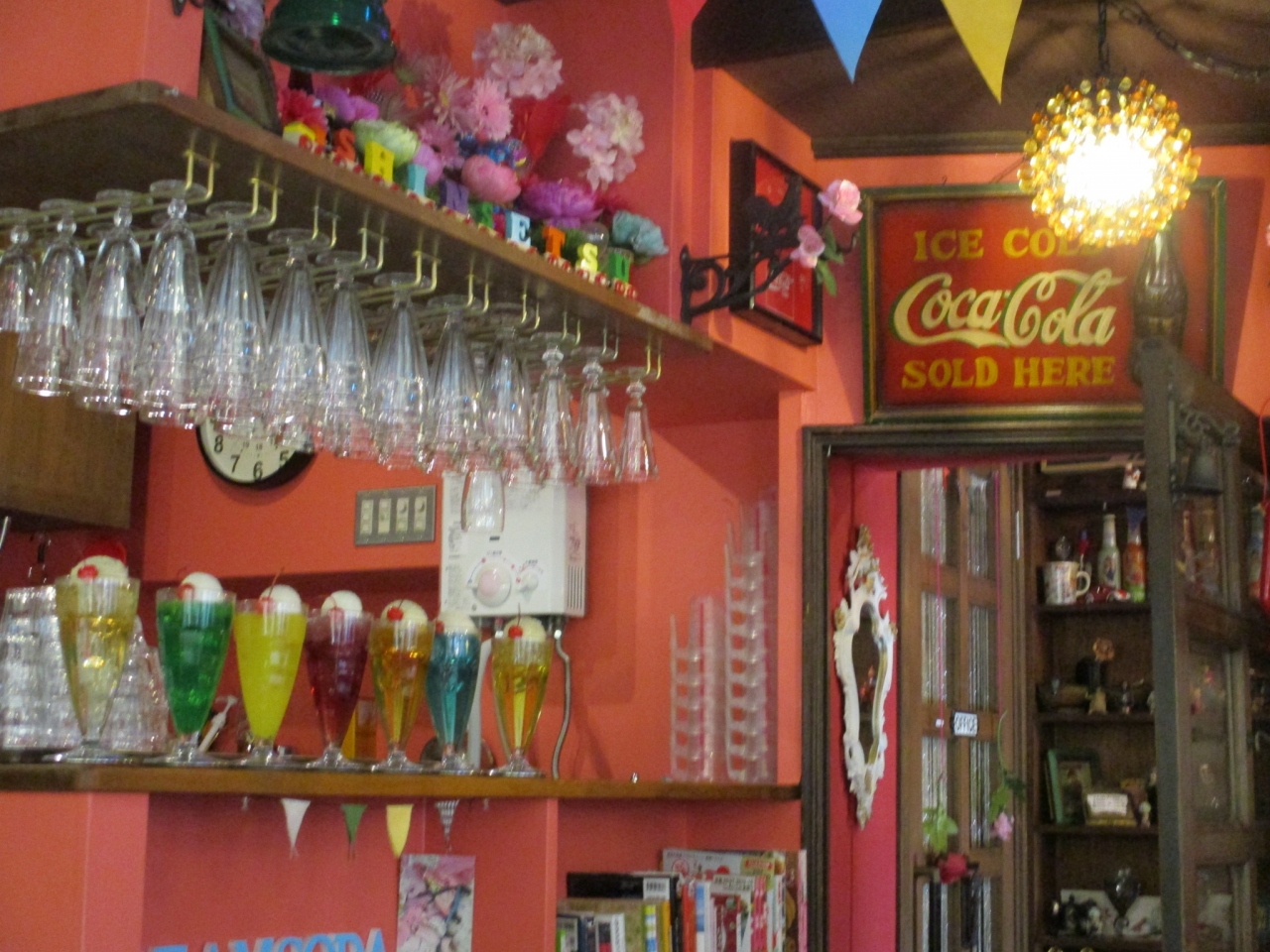 寺町京極商店街にあるクリームソーダなどの喫茶店です。訪れた日は午後オープンでした。お店に入ると、ビビッドな色彩と装飾に気分が高まります。1階席と2階席があります。クリームソーダの種類は20種類くらいありました。私はカシス味にしました。写真をたくさん撮ったり楽しい時間を過ごせました。