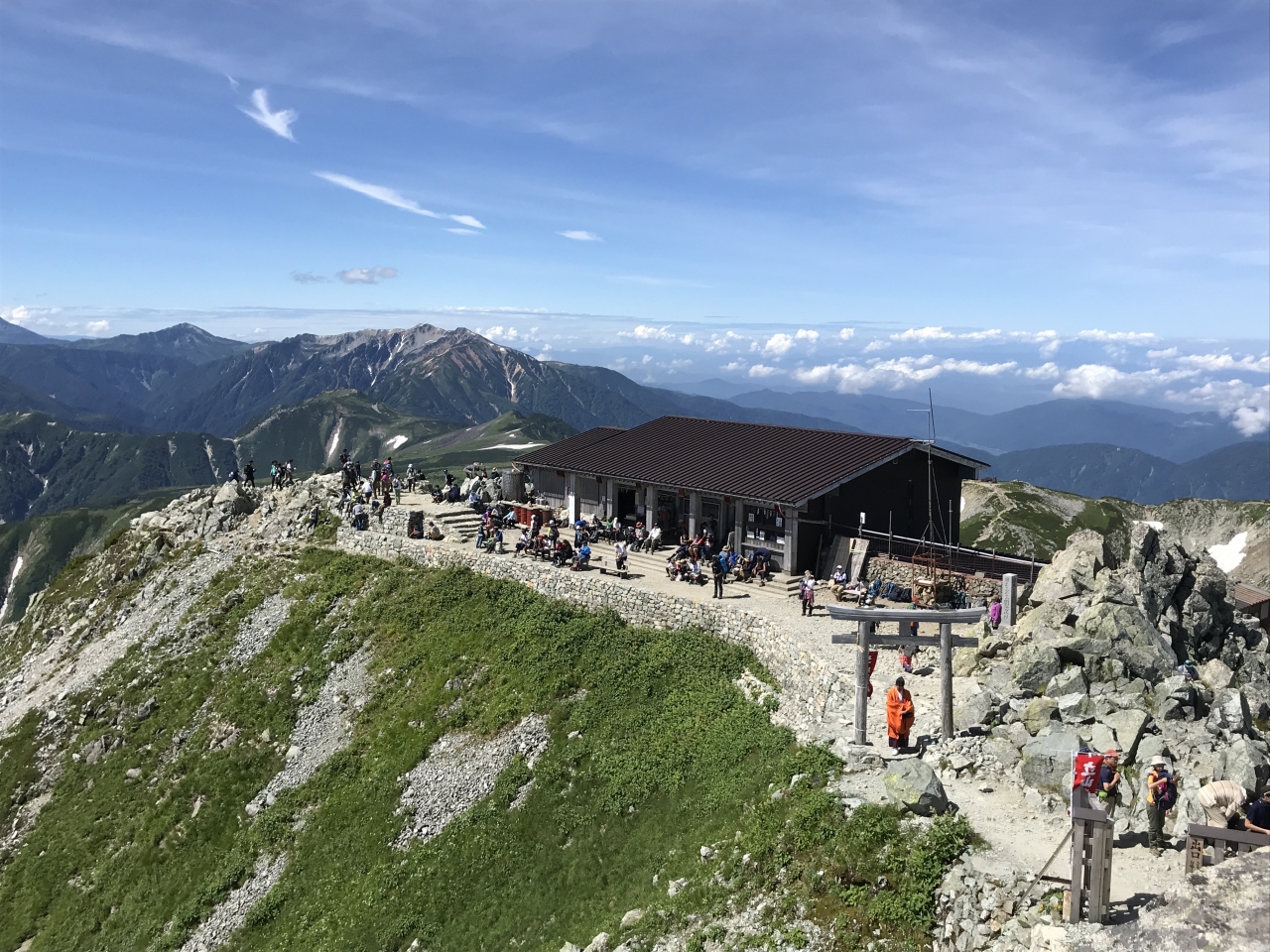 天候が良ければ富士山まで見えます。周辺には視界を遮るものが何もないので全周囲見渡すことができました。日本三大霊山の一つなのでなにか不思議な力で守られているような感じのする登山でした。雄山神社ではお祓いを必ず受けるといいことがあるように思えました。
