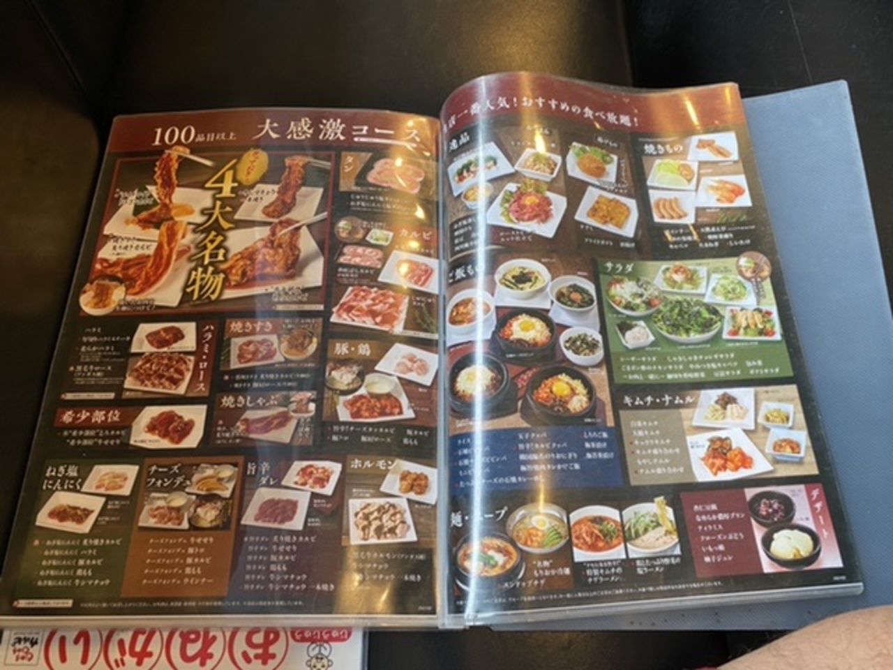 たのんだのは食べ放題の大感激コース2,838円!牛シマチョウ一本焼き、ドラゴンカルビ、焼きすきや焼きしゃぶ、、、イイですね(^^)