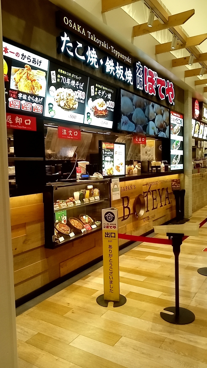 東京お台場のアクアシティお台場 1Fのフードコートに「ぼてや アクアシティお台場店」が出店しています。お好み焼きや焼きそばなどがいただけることもあり、男性のお客様がとても多く利用されていらっしゃいました。