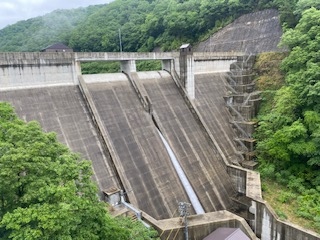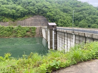数年前に完成した比較的新しいダムです。このダムの目前を斜めに横切るかたちで、橋が通っているので、このダムの壁を目前に見る事が出来、とても見ごたえがあると思います。規模は大きくはないダムですが、この橋からの眺めは、迫力十分です。
