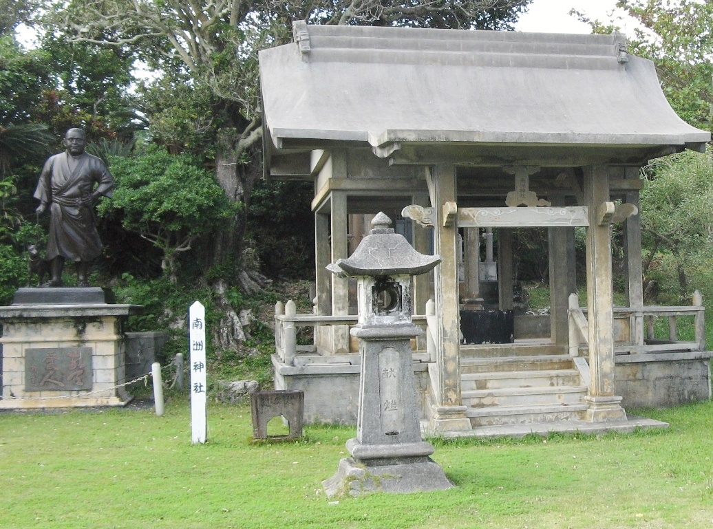 流罪となり、この島で1年6ケ月牢屋生活をした西郷さんの遺徳を偲んで建てられた神社です。本殿のそばに犬を連れた立派な西郷さんの銅像があり、この島の人たちに愛されていたことが判りました。歩いて2~3分のところに「西郷南洲記念館」があるので西郷ファンは、是非、合わせて観て回られると良いでしょう。