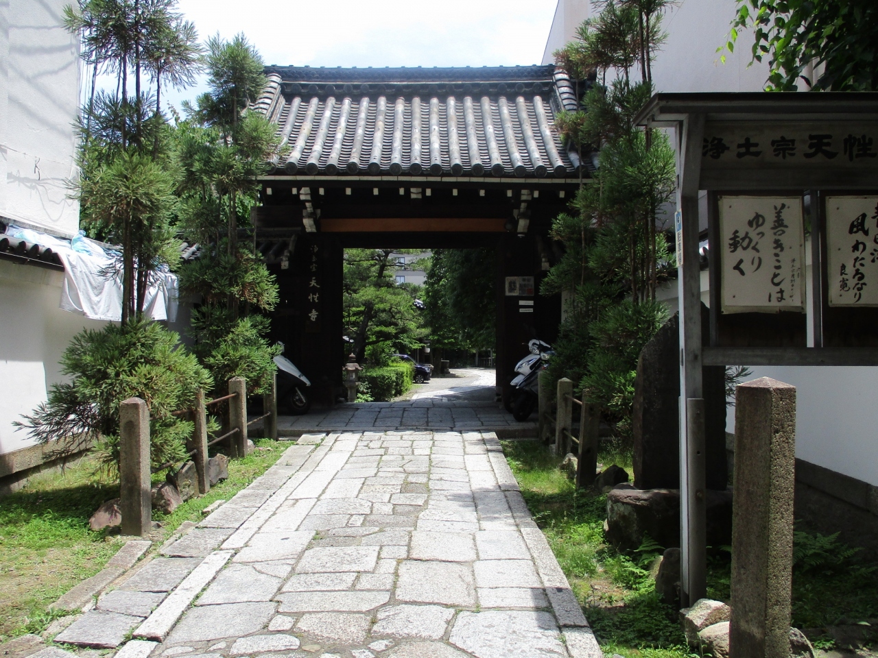 寺町通を歩いていた時通りかかりました。天性寺は知恩院の末寺で、天正五年(1577)に創建され、明治13年に再建されました。観光寺院ではないですが、石畳と緑が印象に残りました。思った以上に境内は広かったです。静かな雰囲気でした。