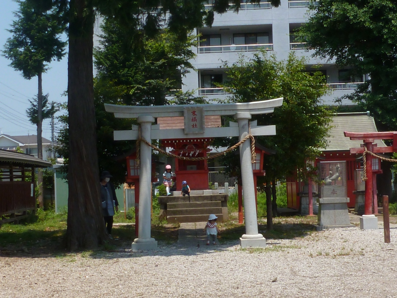 八幡児童遊園があり、親子連れが遊んでいた。