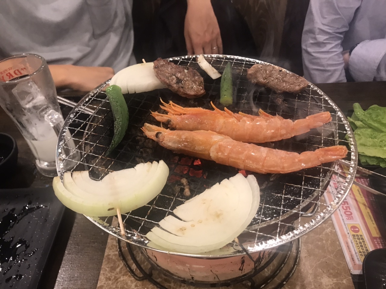 後輩達と焼肉の食べ放題をしました。値段の一番高いデラックスコースで行きます。でも、コースの売りでもある牛上トロタンが既に売り切れていたのがズルい。牛タン、ハラミ、カルビ、ロース、牛ホルモンなど肉をたくさん食べました。それに、エビやタコなどの海鮮も。ビールも飲み、3人で一万三千円ほどだったので、まあまあかと思います。