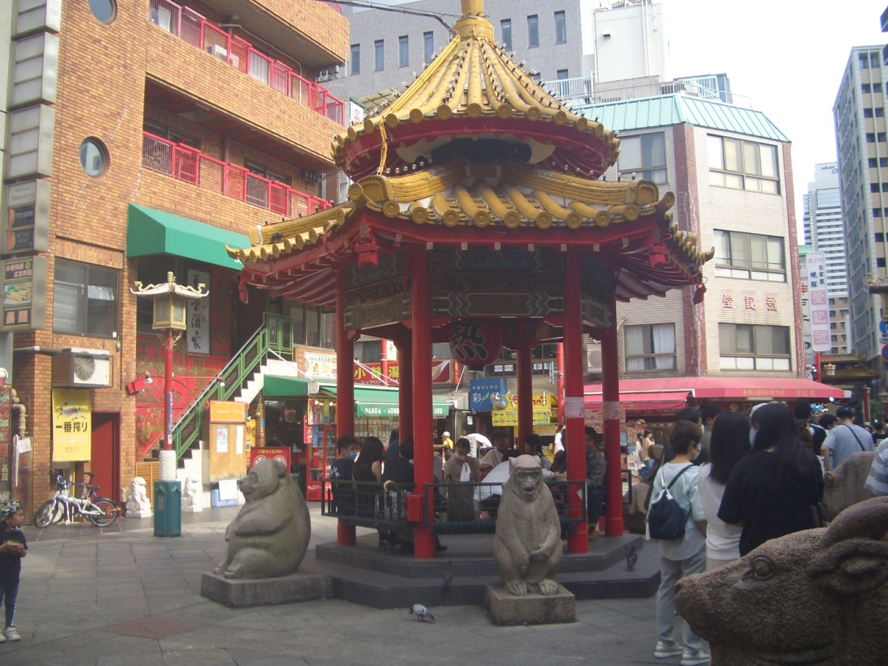 神戸南京町は、、横浜、長崎の中華街と共に、日本三大チャイナタウンの1つです。南京町の中央にある南京町広場にあずまやがあります。このあずまやは、南京町のシンボル的な存在で、よく観光ガイドなどにも掲載されています。昭和58年に建造された高さ6.8m、直径3mのものです。