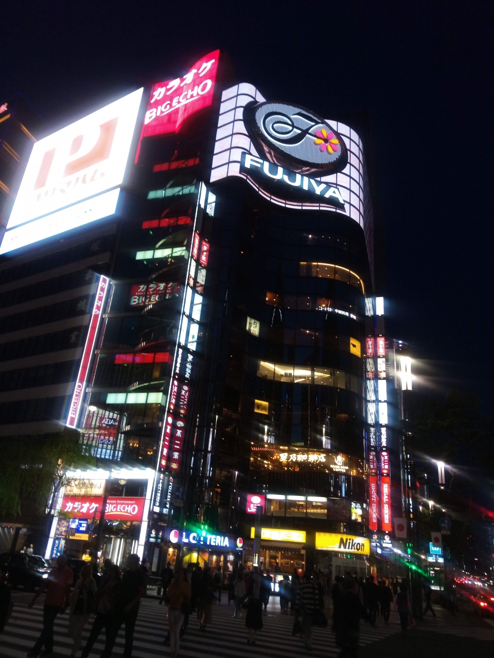 数寄屋通りというと、有楽町界隈を思い出すものですが、昔からある有名な景色の一つに、添付写真のような不二家の大きなビルです。お馴染みの不二家のスイーツをゲットするのに最高の場所で、夜のネオンもきれいです。