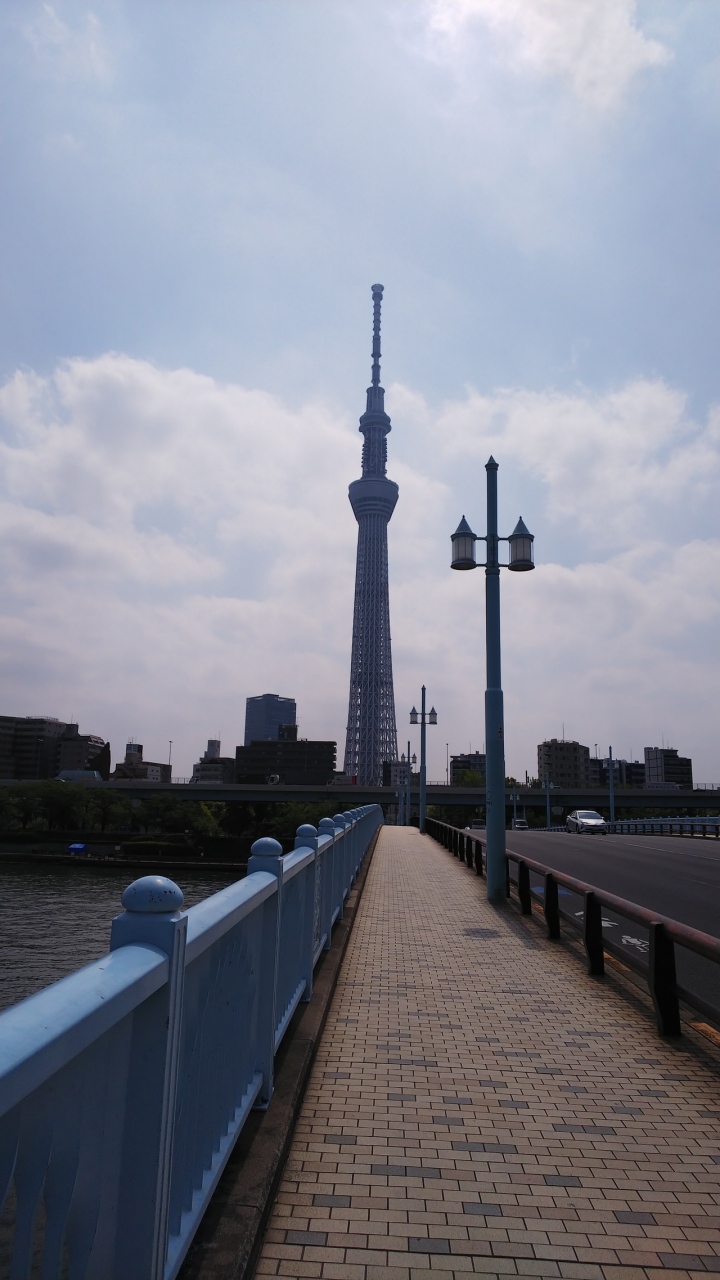 橋からはスカイツリーが目前に見えるような感じで、橋と川とスカイツリーを一度に写真に収められるスポットでもある。