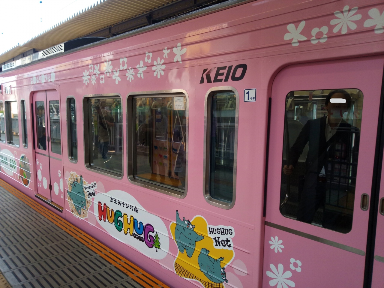 京王動物園線は、高幡不動駅から多摩動物公園駅を結んでいて、添付写真のように、派手なカラーの外装の電車が、とてもきれいで、必見です。週末・祝日はたいてい混みますが、早朝の利用では、空いていて座れました。