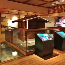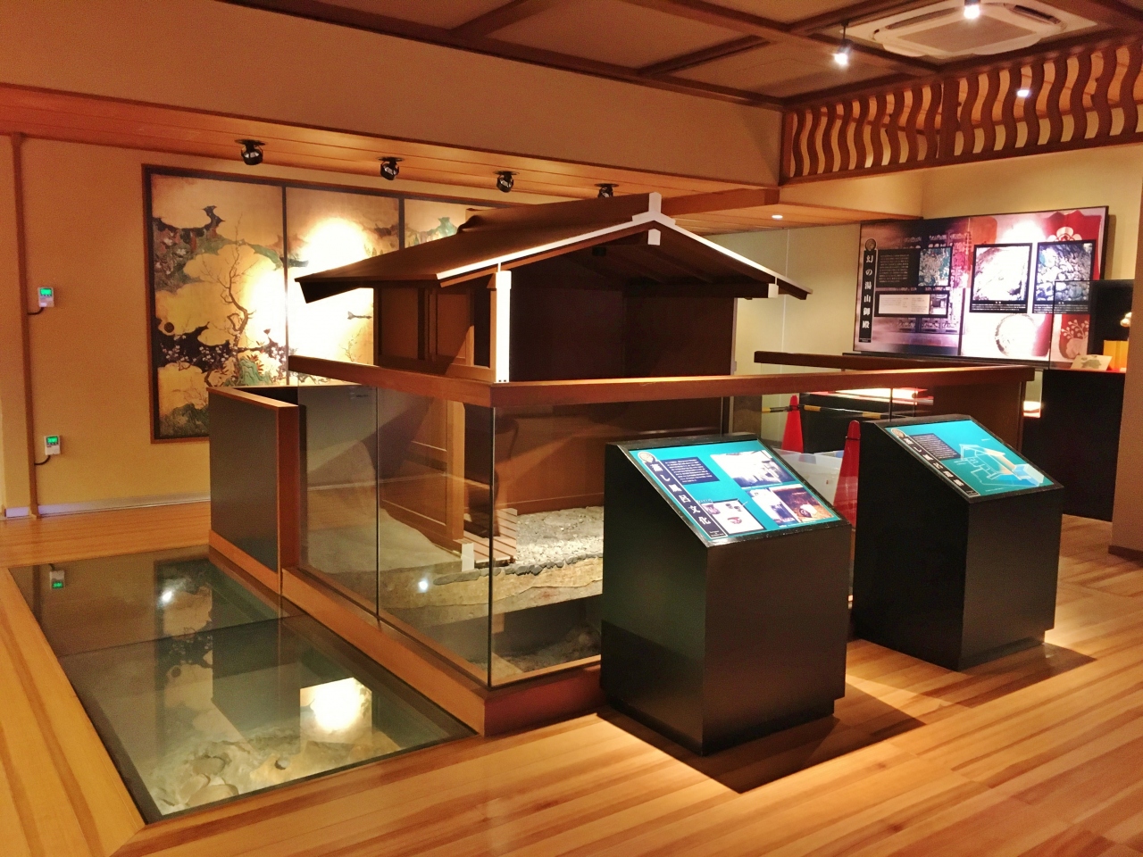 1995年1月の阪神淡路大震災で壊れた極楽寺庫裏下から、秀吉が造らせた「湯山御殿」の一部が発見され、お風呂の遺構や出土品を保存公開しています。それと共に有馬温泉の歴史や文化なども紹介されています。ワンフロアに展示されているのでさほど時間もかからず気軽に見学できます。入口が少しわかりにくいですが、看板で案内もされています。
