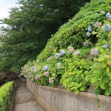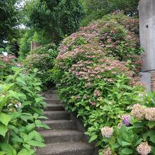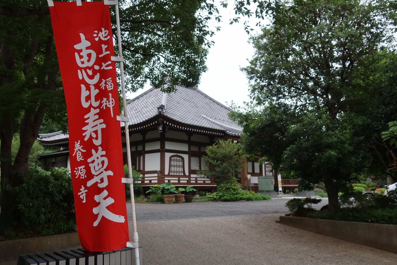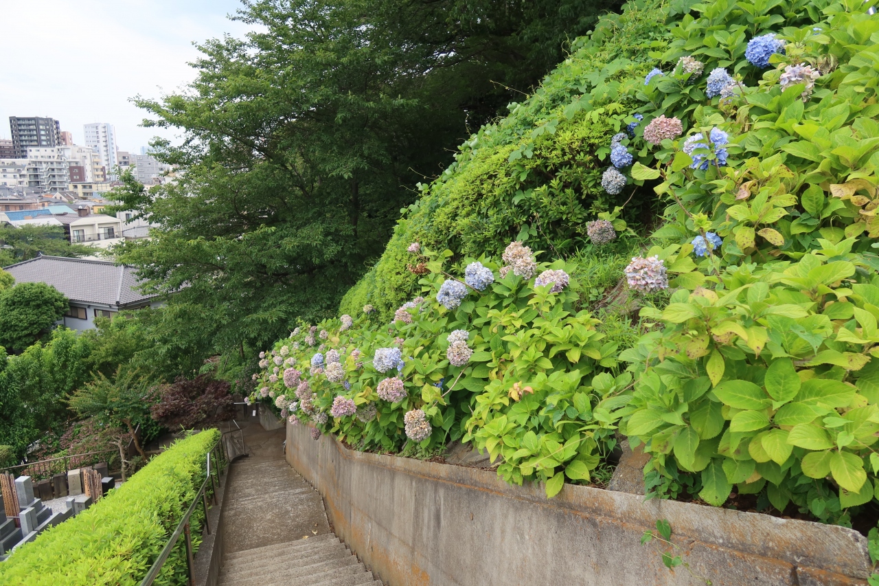 池上本門寺の南側、呑川沿いから少し入った所に長荘山 養源寺があります。1648年の開山で、池上七福神の一つ恵比寿さまが祀られています。この時期は本堂の裏山の石段沿いにはアジサイの花が咲くあじさいロードと呼ばれ、参拝客に解放されています。