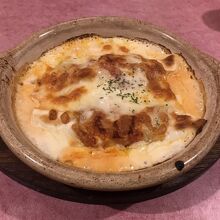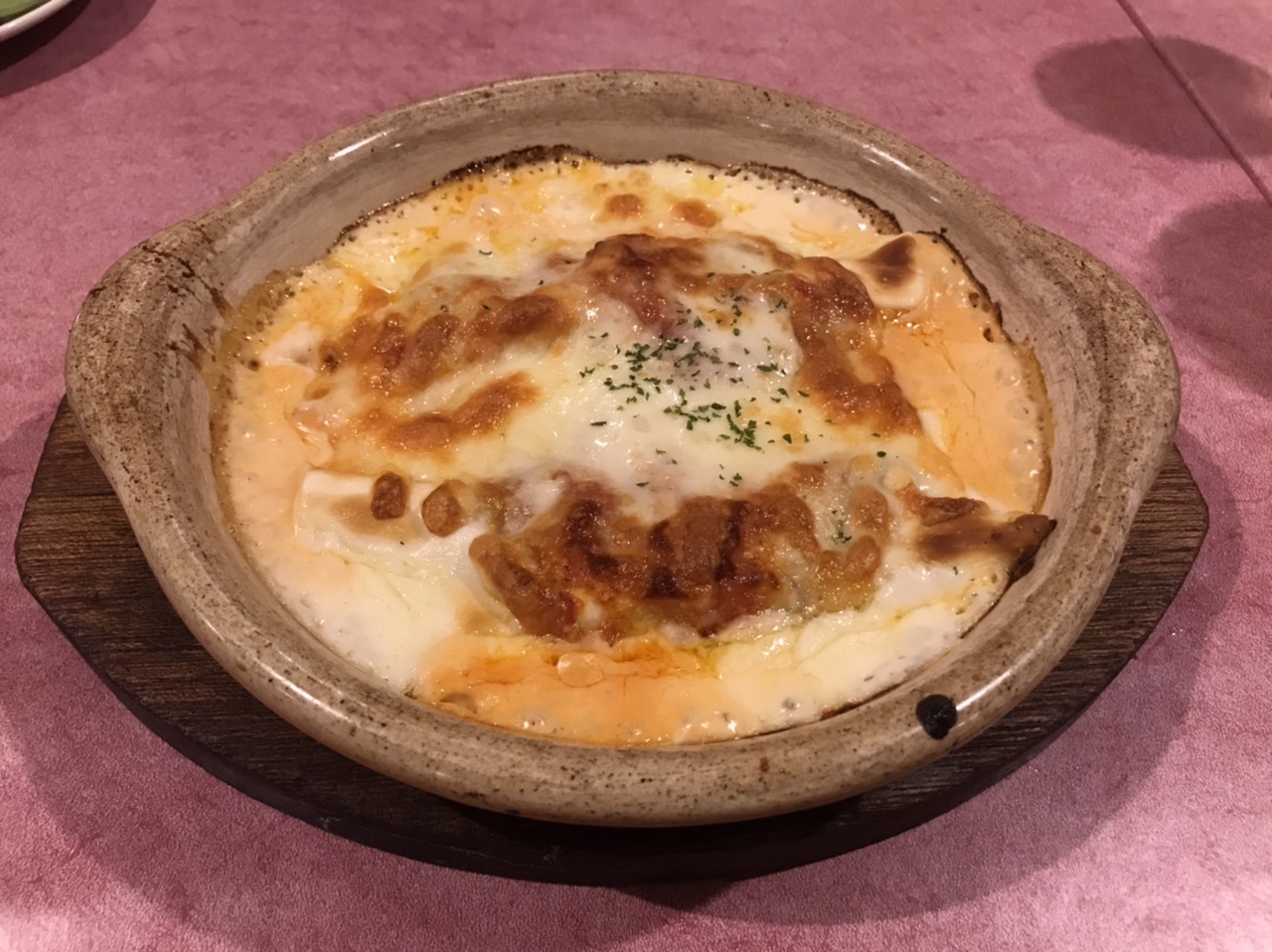 河辺にあるイタリア料理店です。この店の名物らしいカネロニに、カニサラダ、キンメダイのムニエル、ガーリックトーストをいただきました。カネロニはパスタや挽き肉やチーズを層にして焼いた地中海らしき一品。お値段も手頃で、店内の雰囲気も落ち着けます。
