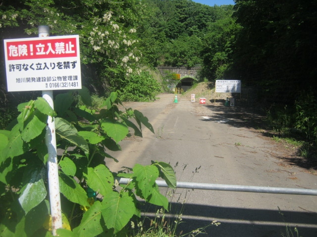ただ、意外とそれ以外の時期に訪問したことがなかったので、6月半ばとかはどんな様子かなと訪問してみたのですが、公園入口の道路ゲートがクローズしていて、中に立ち入れないようになっていました。ただ、ここは丁度比布トンネルの上部にあり、旧比布トンネル入口の様子(内部への立ち入りは禁止)を眺めたり、ちょっと高台にあるので、市街地方面の遠景を楽しめたり、と、ゲート前までアクセスするのも案外楽しいです。