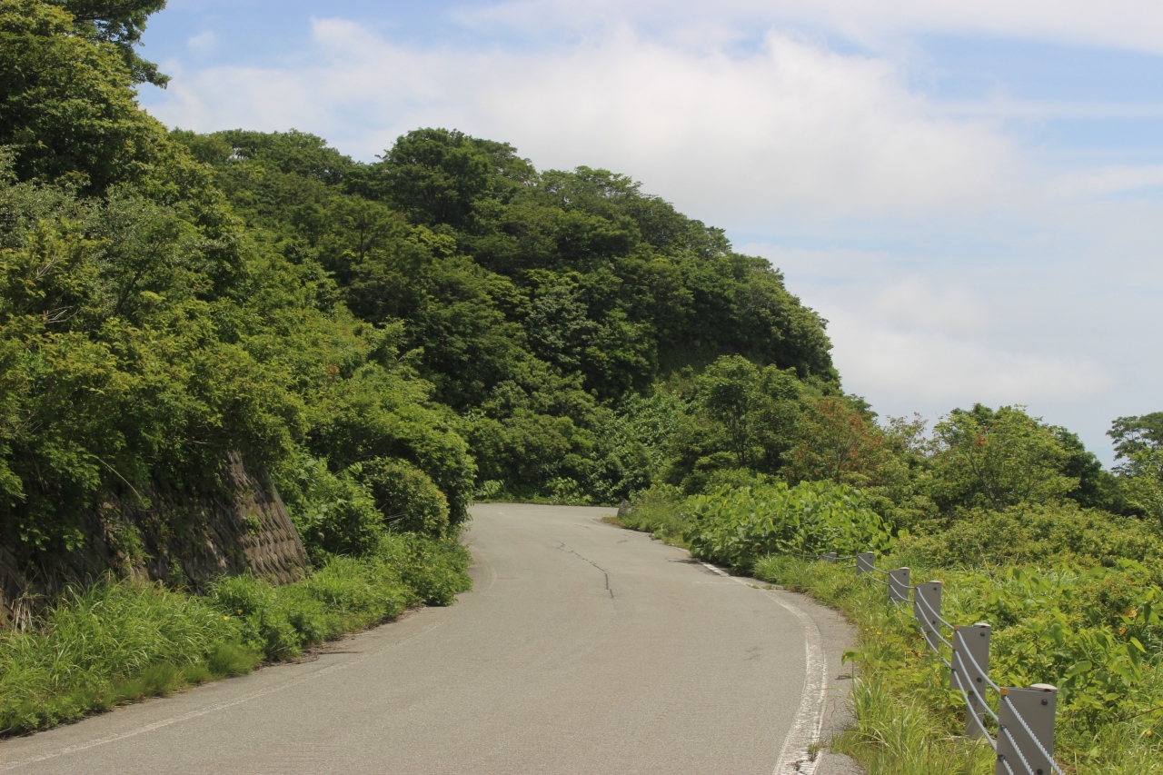 「スカイライン」という観光道路なので、快適な道路かと思ったら、幅も狭く、くねくね道の林道のような道で運転はやや苦労しました。