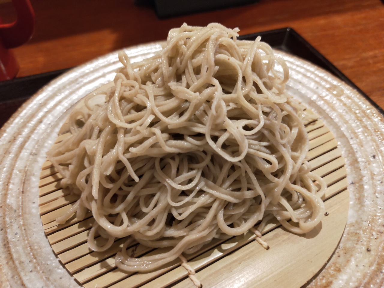 寺町夷川の交差点を西に入ってすぐの蕎麦屋です。上品な店で、カウンター席とテ一ブル席がありました。十割石臼そばで、細めのあっさりした麺でしたが、残念ながら特徴は感じられませんでした。石狩沼田産とありました。昼のランチセットを注文、もりそば、炊き込みご飯、おひたし、卵でしたが、内容からは強気の価格設定で、普段着使いの店ではないとも感じました。