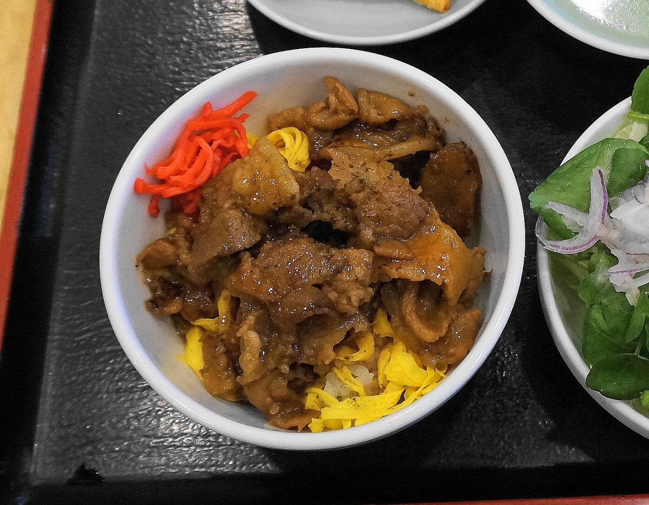 甘辛い秘伝のたれで炒めた豚肉は甘辛具合が絶妙でごはんにぴったり、お箸が止まりません。