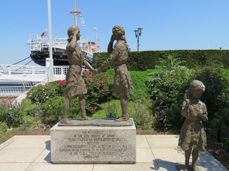 山下公園・氷川丸の前に建つ日米友好ガールスカウトの像 。