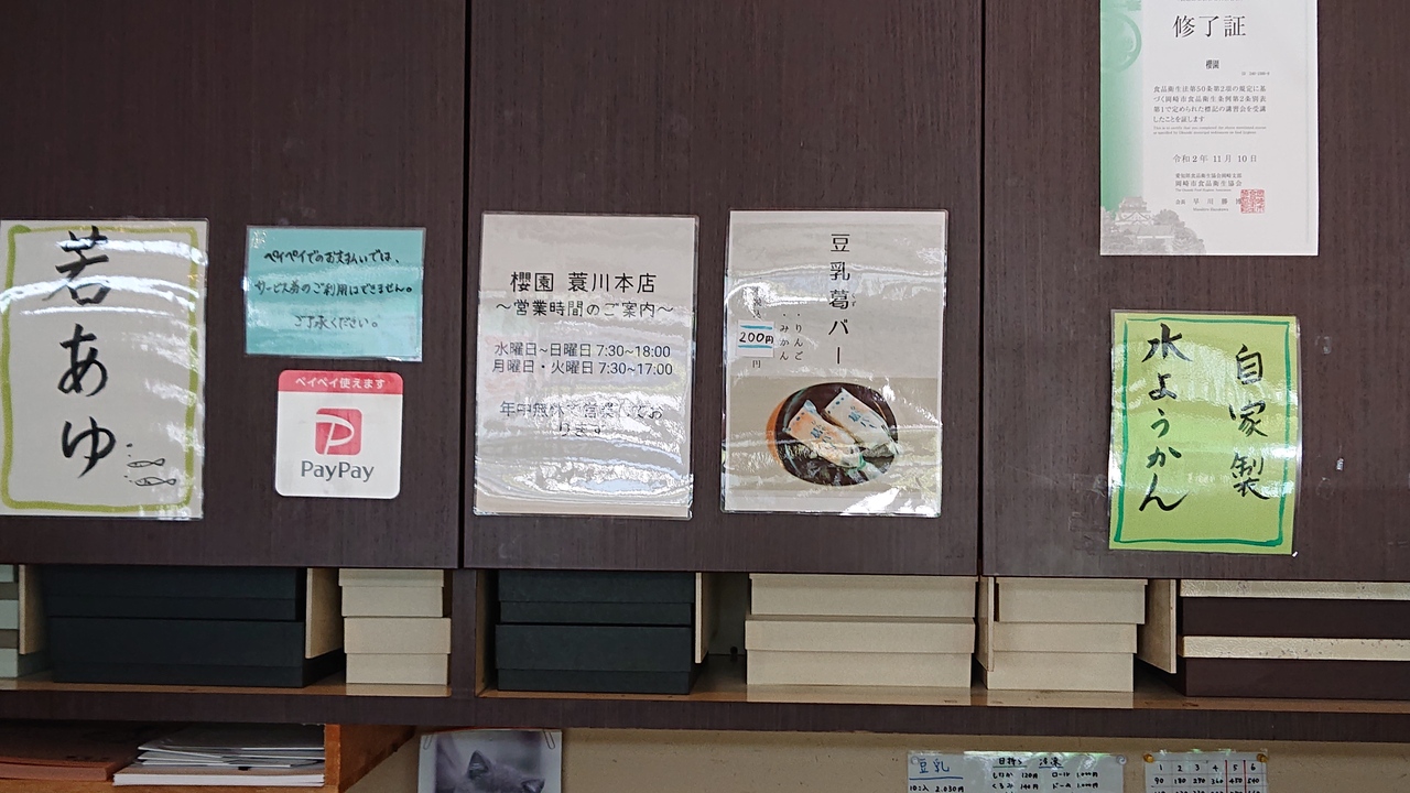 豆乳を用いたお菓子を押している和菓子屋さんです。今回は、豆乳が用いられた、りんご葛バーアイスと、お饅頭の梅香、をこうにゅうしました。前者は、豆乳により、味にまろやかさが出ているお菓子でした。後者は、適度に梅の風味が効いた餡がおいしいお饅頭でした。特に、後者は気に入りました。
