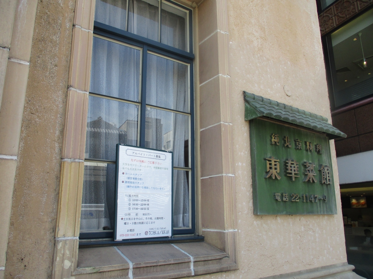 四条大橋の袂に建つ北京料理レストランの東華菜館。凝ったデザインの建物だなと昔から思っていました。ヴォーリズ建築と知ったのは最近です。スパニッシュ・バロックの洋館で登録文化財指定。いつも前を通り過ぎるだけで、一度中に入ってみたいなあと思います。日本最古のエレベーターが気になります。夏場は川床だけでなく屋上ビアガーデンもあります。