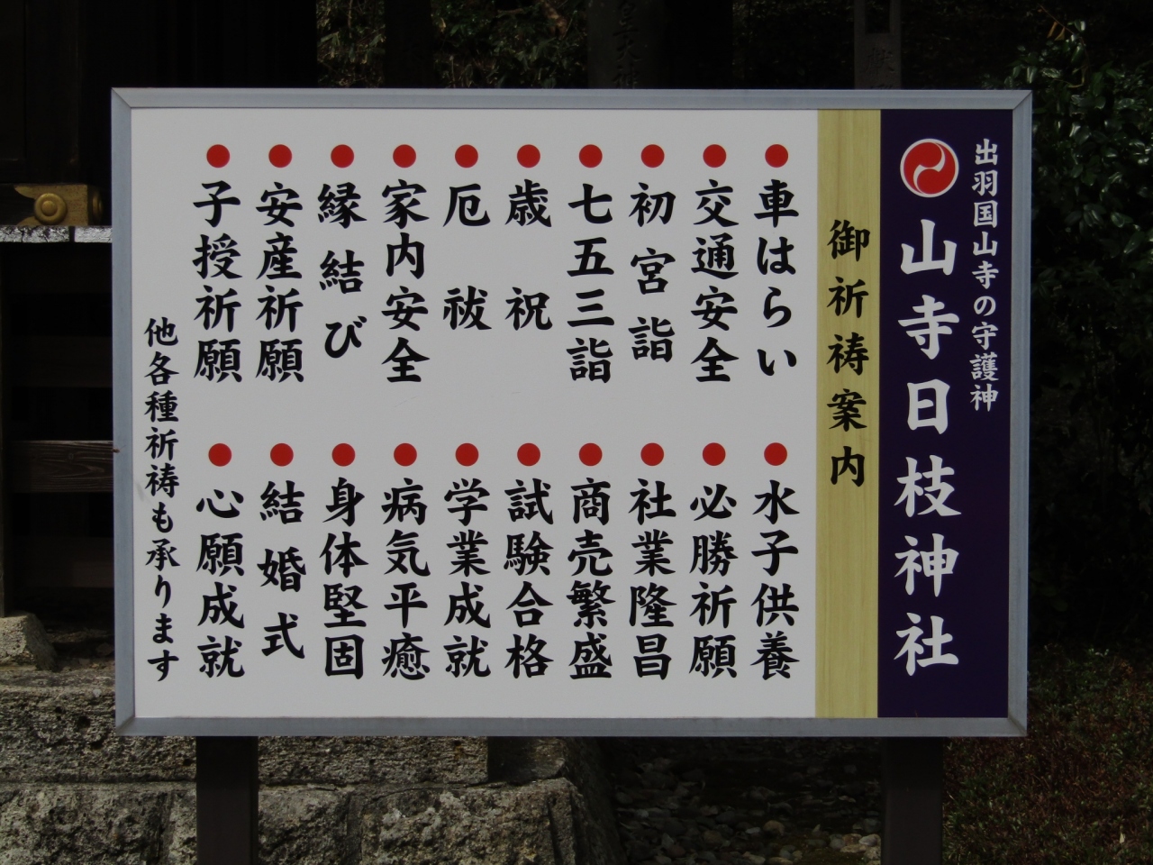 立石寺の麓にあり、860年に立石寺の鎮守社として滋賀県坂本の日吉大社から分霊を勧請し祀ったのが始まりですが、焼き討ちによる焼失後、1534年に再建されました。