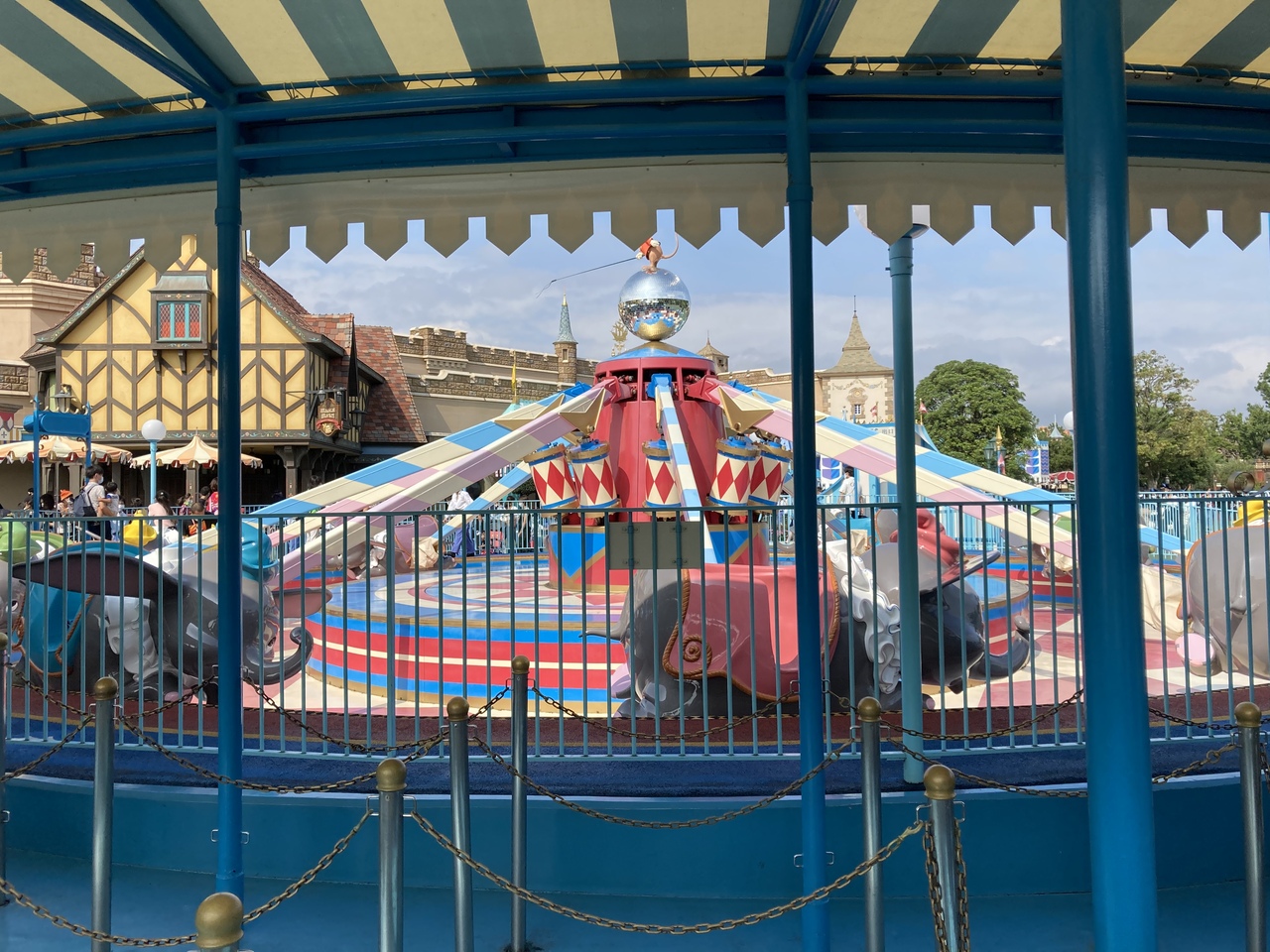 小さなお子様に大人気でいつも長い列ができている空飛ぶダンボ。空いているタイミングだったので久しぶりに乗ってみました!危険なので乗車中の携帯利用は撮影含めて禁止されていました。ダンボすごく可愛いし、風を切ってとても気持ちいい!いい年齢の私たちですが年甲斐もなくはしゃいでしまったひとときでした。