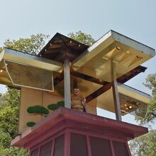 岡﨑城のある岡﨑公園の一画にあります。場所は二の丸能楽堂と家康館のある広場。9:00~18:00までの毎時0分と30分に“ショー”が始まります。時計盤が開き、家康公のからくり人形が照明と音響の演出と共に能を舞います。時間にして3分ほど。しかーし、見応えはあまりなし。1回見れば十分のクオリティーです。