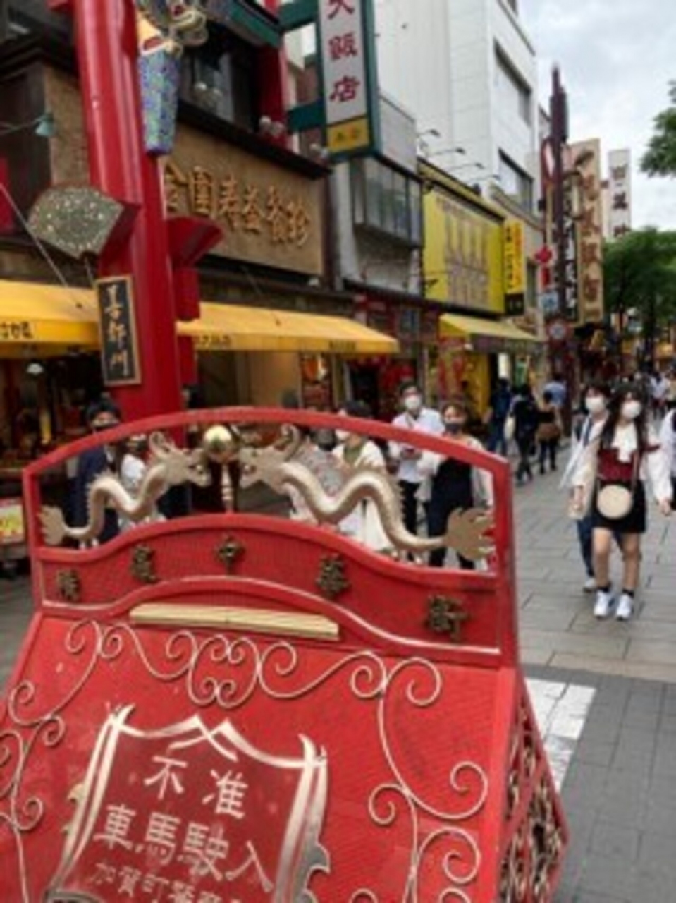 中華料理の店が連なっていますが、店先で豚まんや中華スイーツなどもあり、食べ歩きが楽しい場所です。