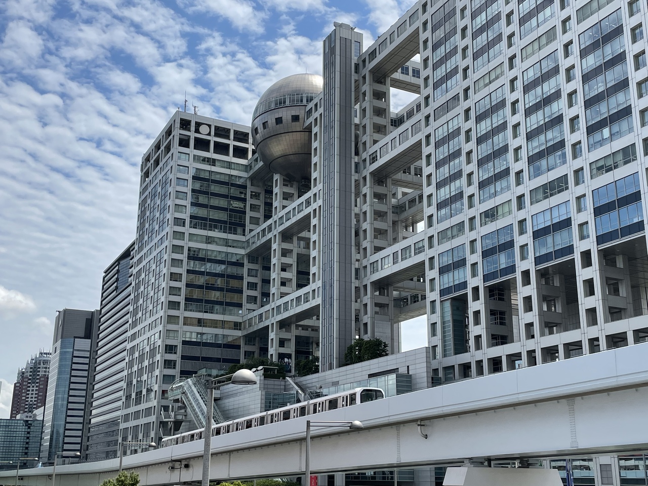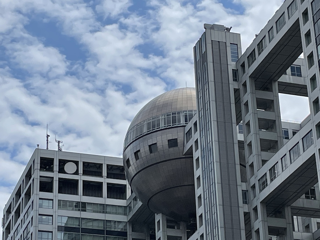 ゆりかもめの台場駅から歩いてすぐです。お台場のシンボルのような球体を持つ大きなビルがフジテレビの本社ビルです。思ったほどの大きさではなかったです。6月の平日、球体展望台の見学もストップしているようで、ビル周辺は閑散としていました。