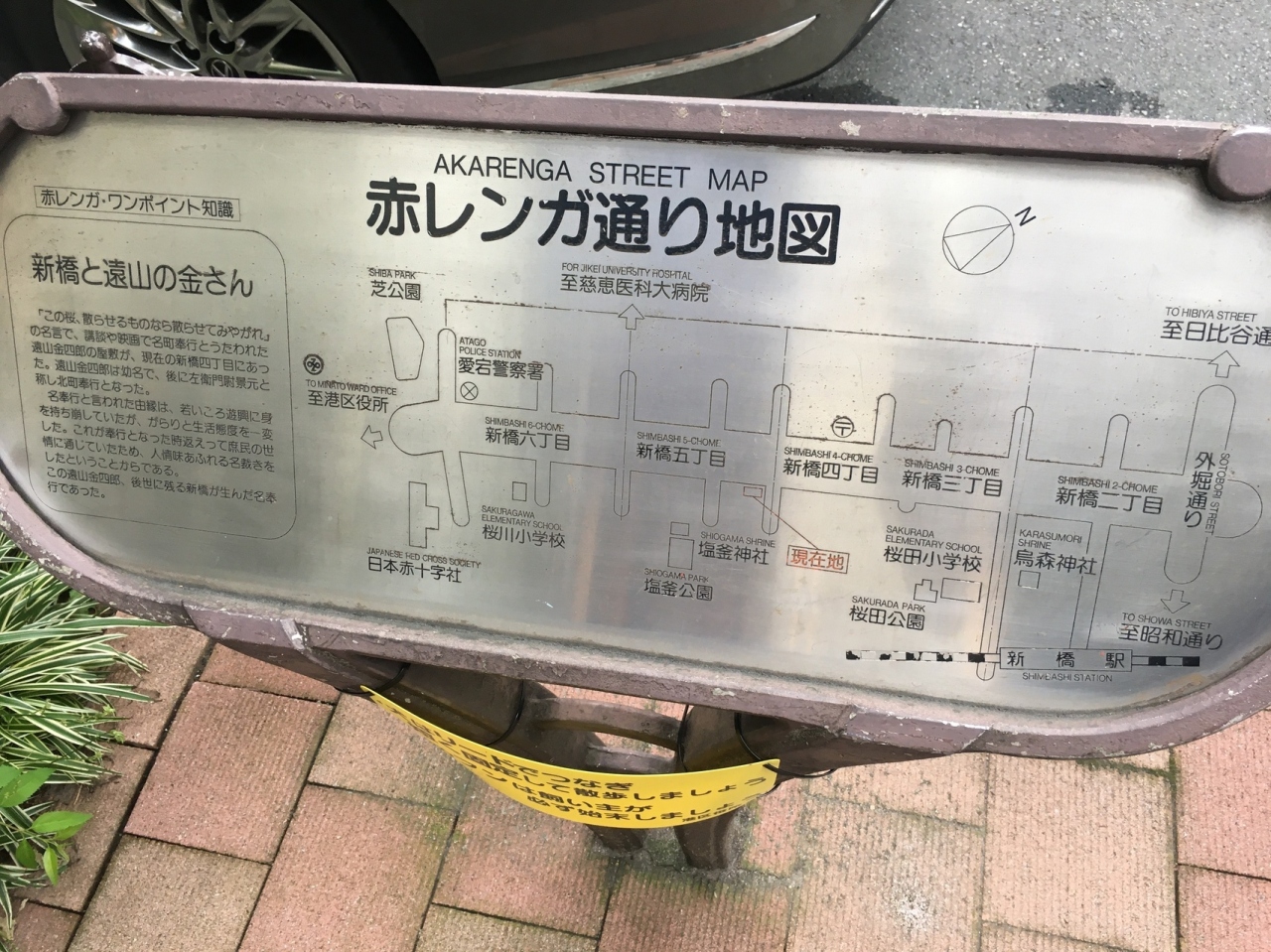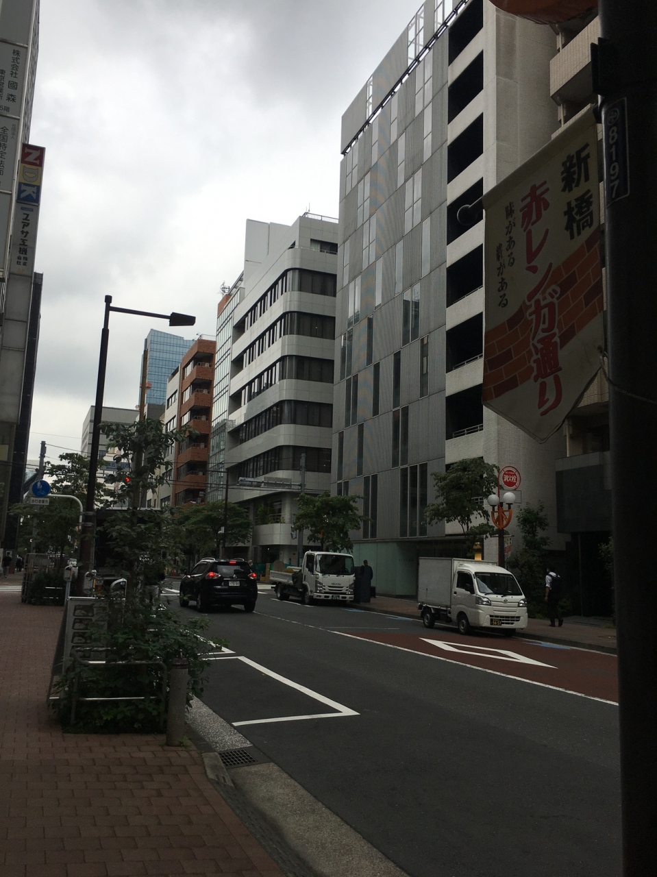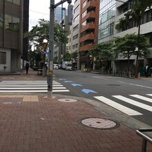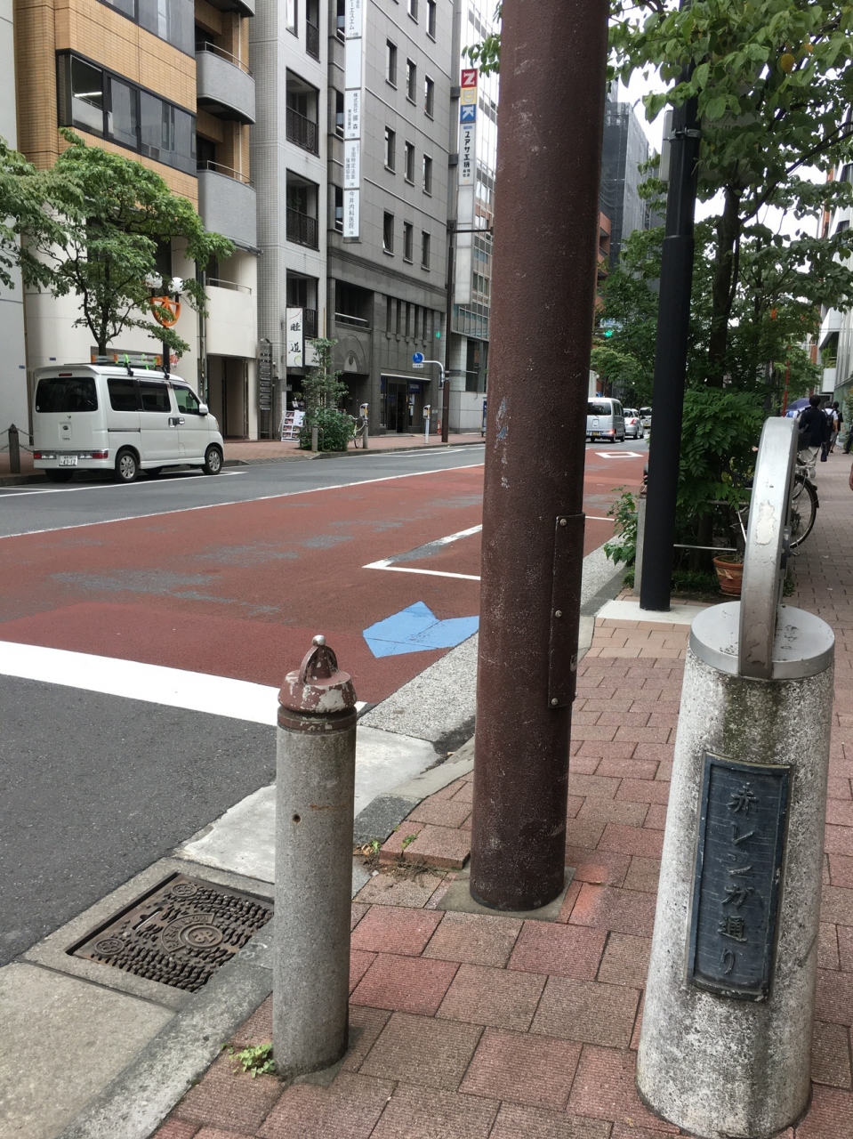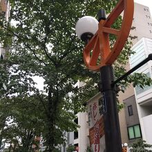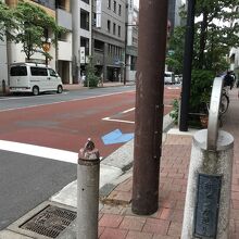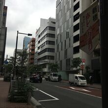 交通量はそれほど多くない、片側1車線の車道で、沿線にも店がぽつんぽつんとある感じでした。歩道沿いには間隔を置いて木が生え、街灯がお洒落でした。歩道は煉瓦ぽい以外は普通の通りで、遠山の金さんのことが書いてある看板がありました。