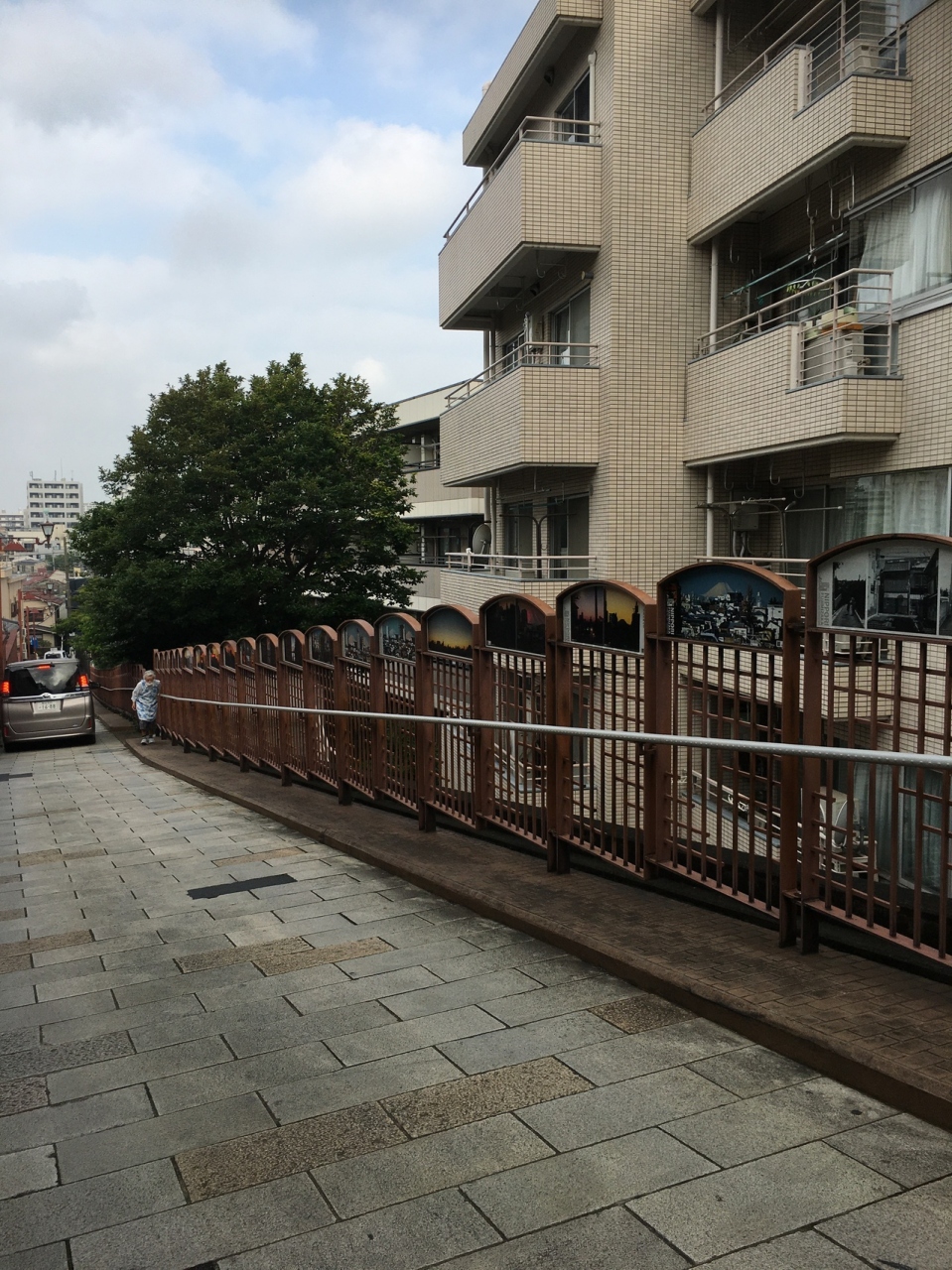 下から上がりました。最初はなだらかでしたが上には行くにつれ、少しづ傾斜となりました。自動車1台程通れる幅で、距離は長めで左右には寺や建物があります。上の方には坂の昔の写真がいくつか掲載され、じっくりと見てしまいました。