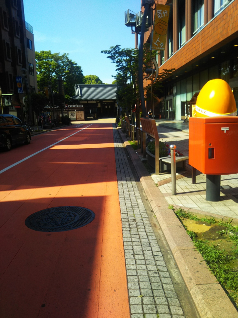浅草にある商店街のひとつです。浅草ロックスから伝法院通りを抜けて浅草公会堂のある通りが浅草オレンジ通りです。名前の通り、ほんとうに道路がオレンジ色に塗装されておりすぐにわかります。和菓子のお店や浅草らしいてお店があり楽しめました。