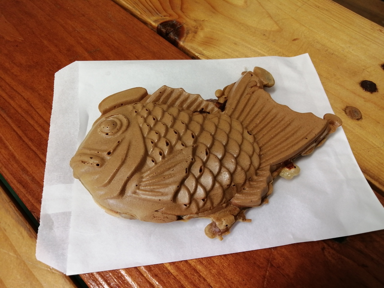 三重県伊勢志摩発祥のたいやきチェーンです。定番の「つぶあんたいやき(税込170円)」にするつもりだったのですが、メニューをみたら岡崎店限定と書かれた「チーズあんたいやき(190円)」にそそられてしまいチェンジ。コロナの影響で店内の飲食不可のところ、他にお客さんがいないからいいよと言われたので店内でいただきました。