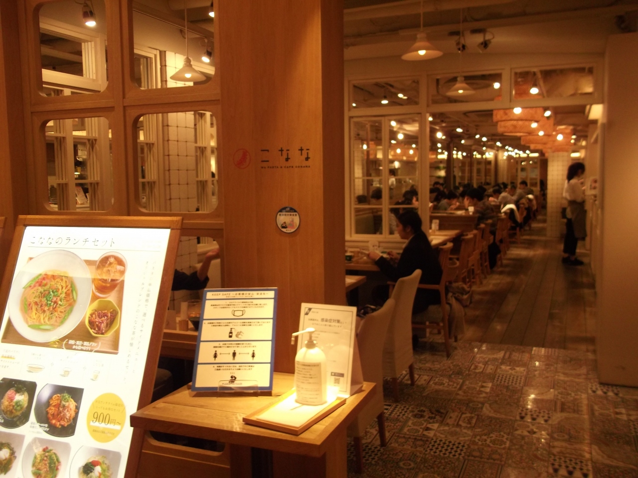 横浜駅西口側のモアーズレストラン街にあるパスタのお店です。箸で食べるパスタということで、ちょっと変わった和風のメニューがそろっています。ランチでは数種類のパスタから1品と、サイドメニュー、ドリンクがついて900円からとリーズナブルです。