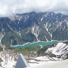 立山黒部アルペンルートの室堂から黒部ダムへ向かう途中にある、絶景が眺められるスポットです。断崖絶壁に張り付くように展望台があるので、黒部湖や後立山連峰の大パノラマを楽しめます。黒部湖のたたえるエメラルド色の湖水が自然の中でいっそう映えて見えました。