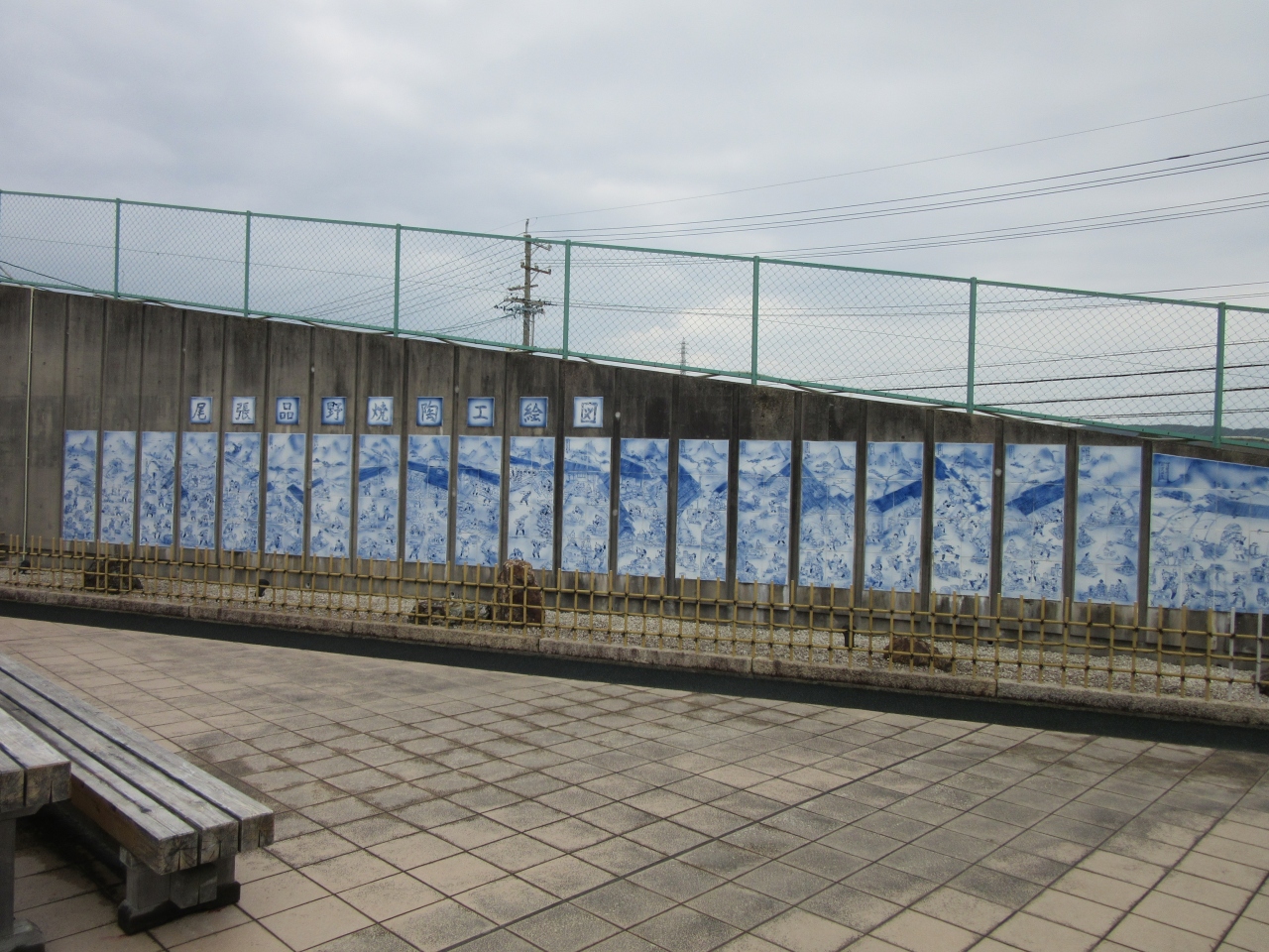 尚、屋外フードコートにシンボルとして「尾張品野焼陶工絵図」陶磁器で造った大作も展示されています。大型の陶板に絵を描いて窯で焼いたものです。大きな物を窯で綺麗に(均一に)焼き上げるのは本当に大変だと思います